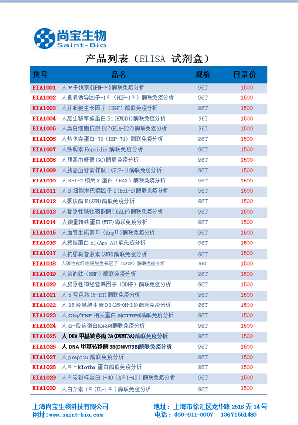 上海尚寶生物科技有限公司,ELISA試劑盒產(chǎn)品目錄